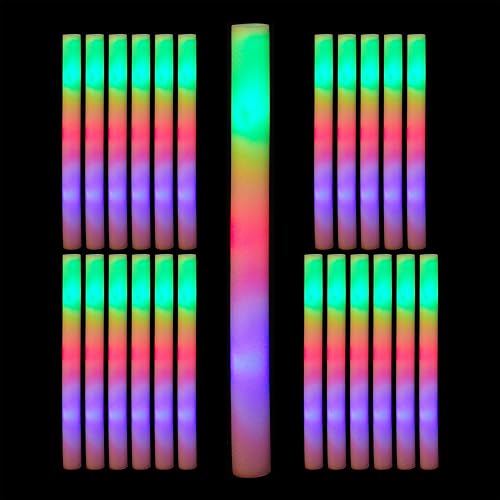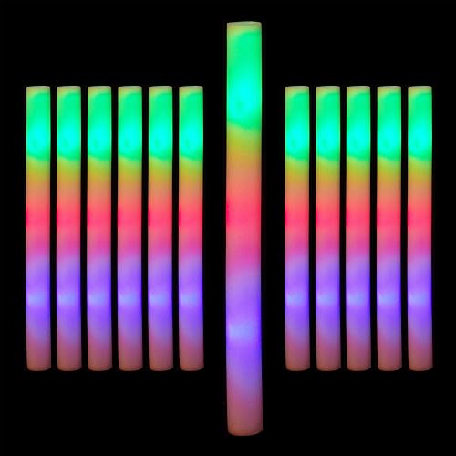 Relaxdays Bâton Lumineux LED en Lot de 24, bâtonnets Clignotants en Mousse, 3 Modes, avec Piles, fêtes, Festivals, Blanc
