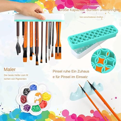 Ynnhik Organisateur de peinture - Étagère de rangement pour bouteilles de peinture acrylique - Support de rangement avec porte-pinceaux - Kit d'organisation pour tubes de peinture acrylique
