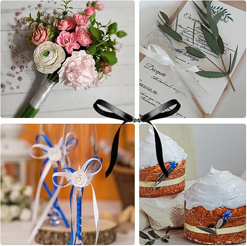 Ruban cadeau en soie blanc 6 mm - Ruban cadeau de mariage - Ruban décoratif en tissu - Pour emballage cadeau de Noël, baptême, bricolage