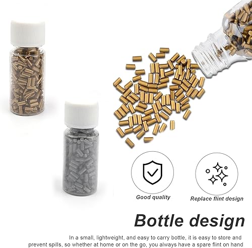 ANDARS Lot de 600 pierres à feu - 2,2 mm - Or/argenté - Avec bouteille de rangement - Convient pour briquets compatibles avec briquet à silex
