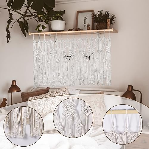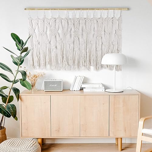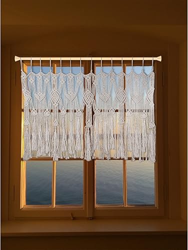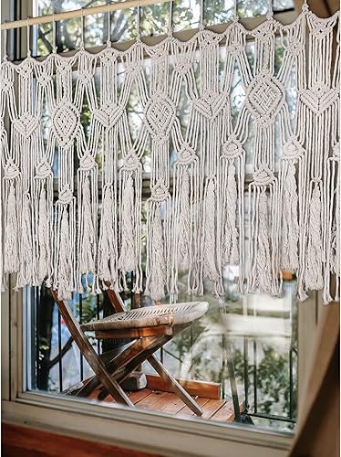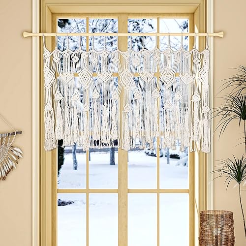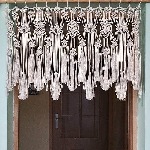 POFEIKTS Cantonnière en macramé avec perles pour fenêtre Kichen Boho Rideaux courts à suspendre audessus du lit Décoration murale pour chambre à coucher, salon, cuisine, salle de bain 119 x 55