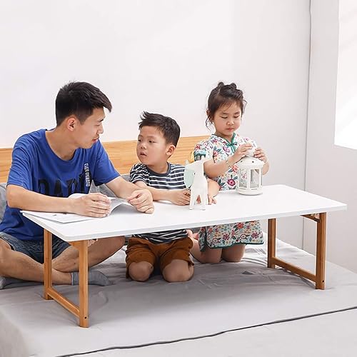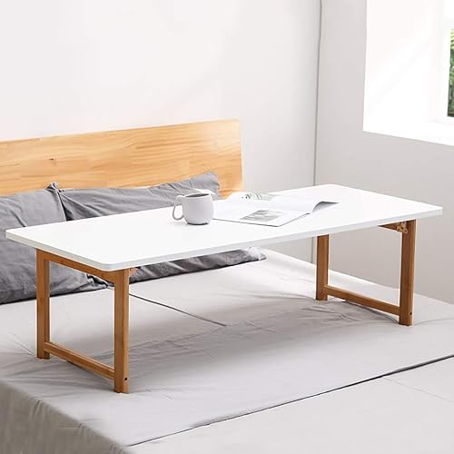 bingomiynhg Table Pliante, Grande Table d'ordinateur de Bureau, Table Basse en Bambou, Table de Loisirs Blanche pour Salon (Dimensions : 100 x 48 x 28 cm)