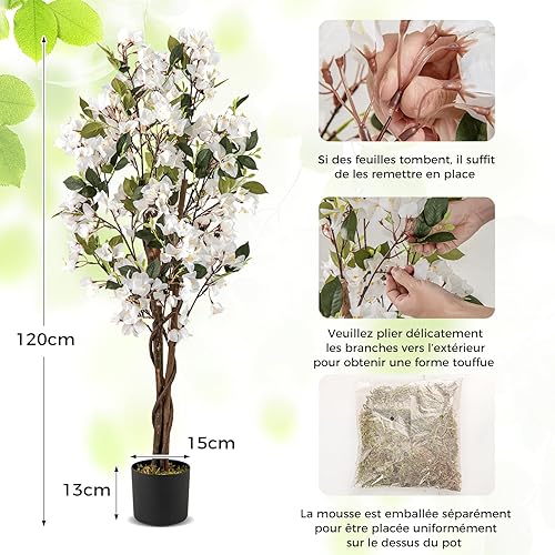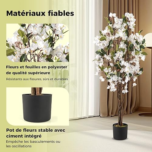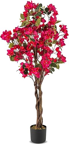 RELAX4LIFE Bougainvillier Artificiel 120 cm, Plante Fausse en Pot pour Intérieur avec 360 Fleurs 40 Feuilles 3 Branches 2 Rotins et Mousse pour Chambre Bureau Patio (2,Bougainvillier Rouge | 120CM)