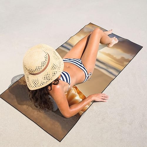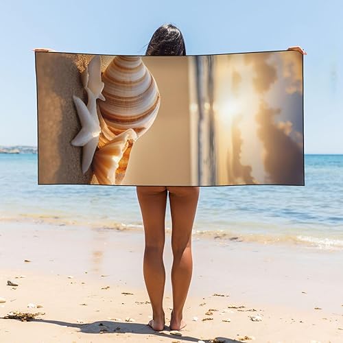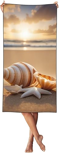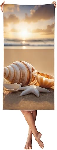 ZTPOWQA Serviette de plage surdimensionnée à séchage rapide et légère avec motif paysage de coquillages sur la plage