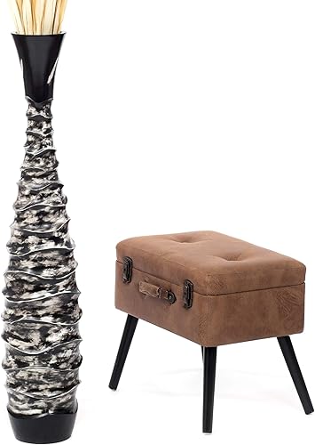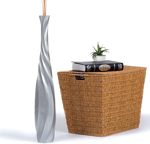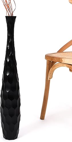 Leewadee Grand Vase A Poser Au Sol pour Branches Décoratives De Pampa, Vase en Bois De Manguier, 90 cm, Blanc