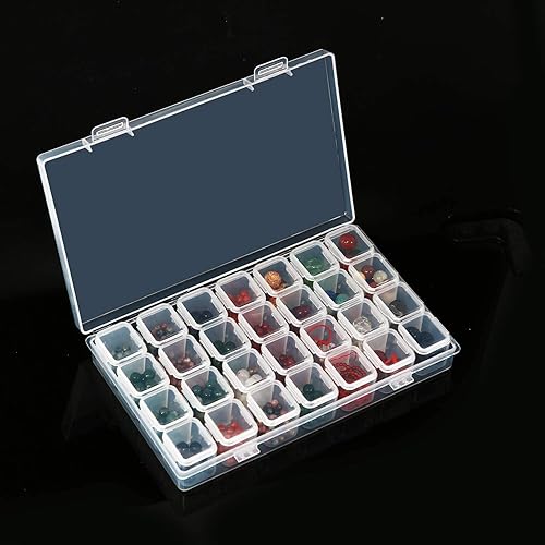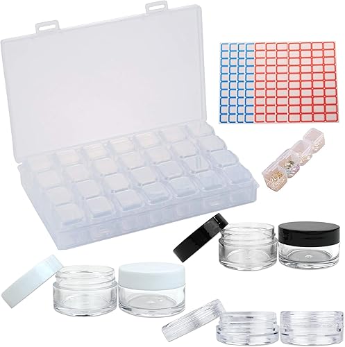 HUAZIZ Boîte de Rangement en Plastique Bijoux Compartiments Transparent avec 28 Petites Grilles+30Pcs Recipient Cosmetique Vide Pots, Organiseur pour Bijoux & Accessoires de Nail & Petites Pièces