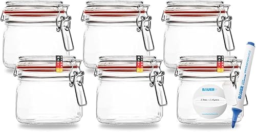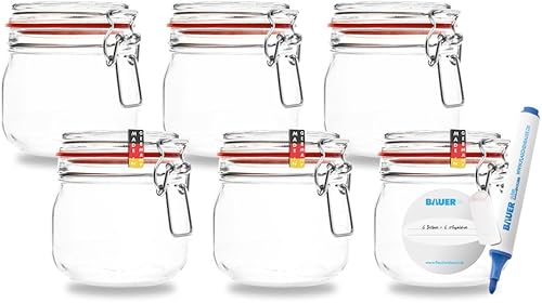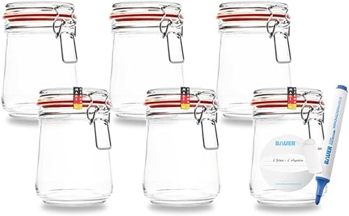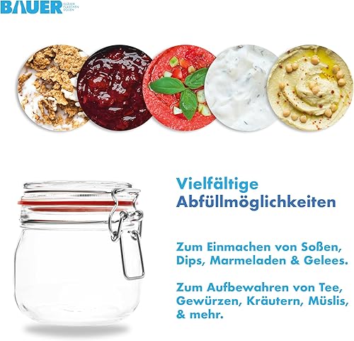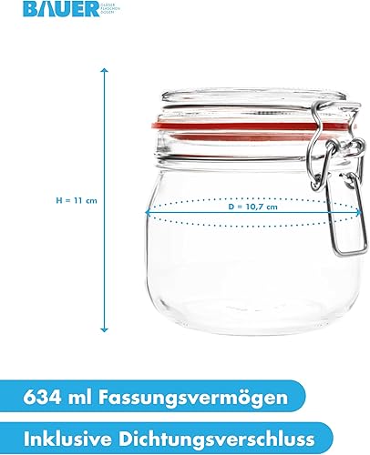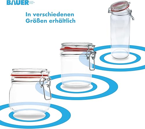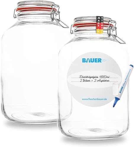 BAUER Flaschenbauer - Lot de 2 bocaux de conservation à étrier métallique - 4880 ml - Convient comme bocal de conservation et de fermentation - Pour le rangement, le remplissage - Bocaux à étrier
