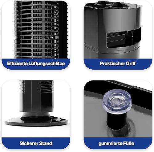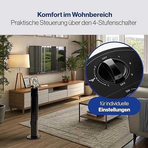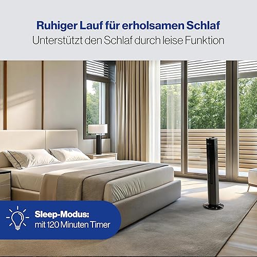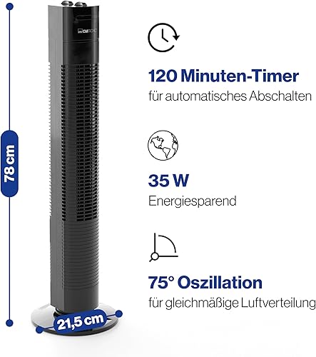Clatronic Ventilateur Tower | 3 vitesses | oscillation à 75° (désactivable) | minuterie de 120 minutes | TVL 3770 | noir