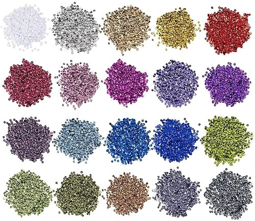 Ideen mit Herz - Lot de 60 000 paillettes métalliques - 20 couleurs dans un sachet de 15 g - Paillettes à coudre, coller, enfiler - Pour couture, art, bricolage, bricolage de bijoux (diamètre 4 mm)