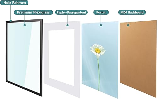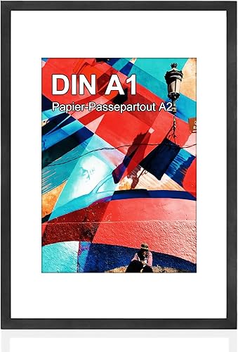 HOHIYO Cadre photo format A1 (59,4 x 84 cm) - Cadre en bois - Avec verre acrylique plexi - Pour images, posters, photos - Noir - 59,4 x 84,1 cm (A1))