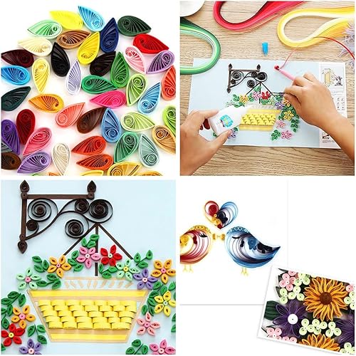 Paper Quilling Kit, Quilling Kit Complet, Kits de Paper Quilling Set, Quilling Kit Complet avec Modele, Outils Quilling Kit Accessoires, Papier Quilling Kit et 200 Bandes de Papier pour DIY, 9 Pcs