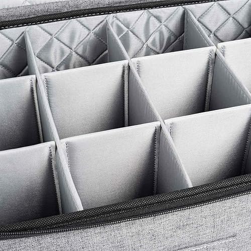 sunwes Rangement de Verres à Vin - Organisateur en Tissu Gris pour 12 Verres à Vin ou Boîte de Rangement Pliable pour Vêtements