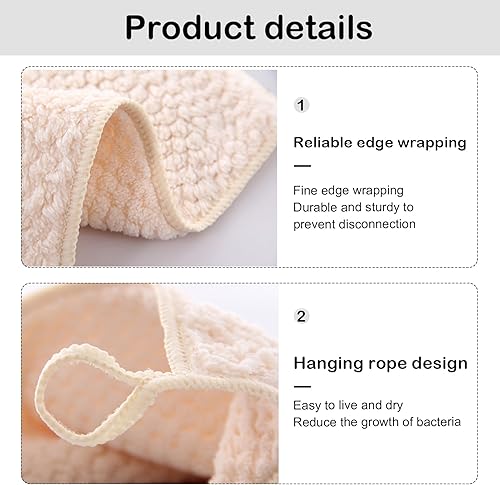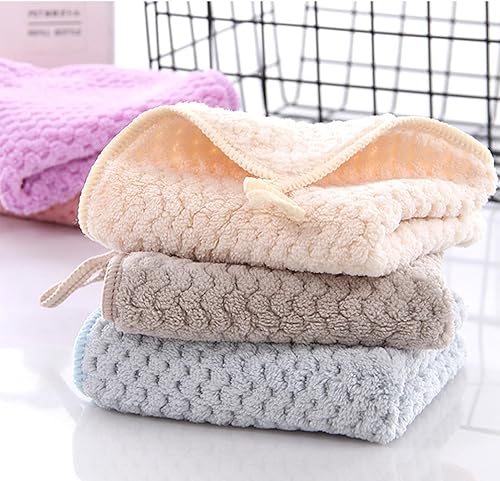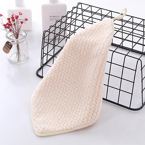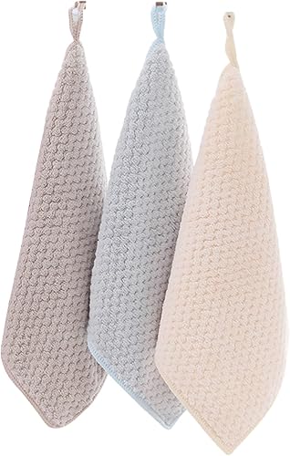 Pasdrucn Lot de 3 essuie-mains pour salle de bain et cuisine, avec boucle de suspension, serviettes d'invités, de cuisine avec boucle de suspension, corail doux, petites serviettes douces (3 couleurs)