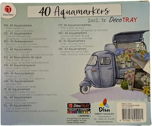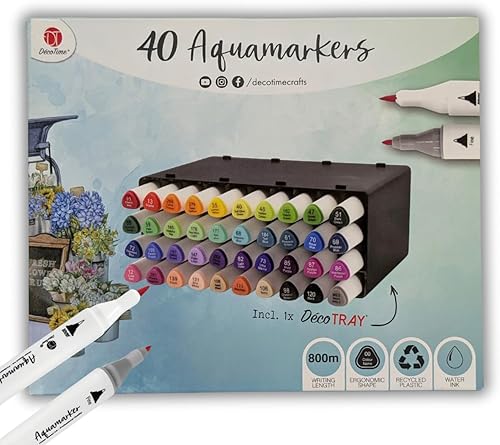 OsoRetail DecoTime Aquamarkers Lot de 40 couleurs + DecoTRAY Marqueurs double pointe à base d'eau (800 m) Corps ergonomique en plastique recyclé pour lettering, scrapbooking et illustration