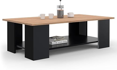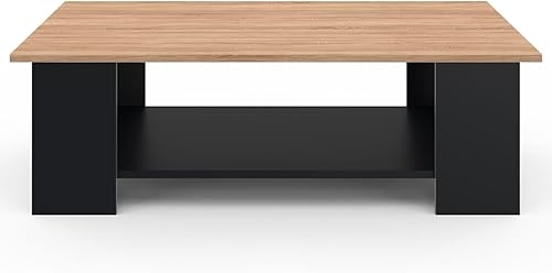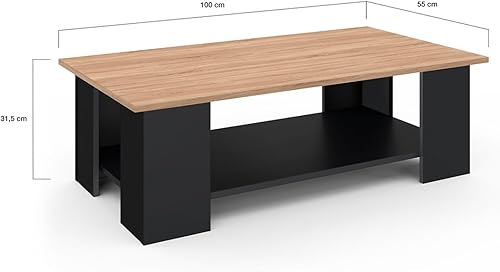 IDMarket - Table Basse rectangulaire ELI Noir Plateau façon hêtre 100 cm