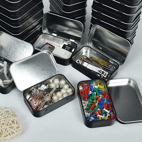 JTKREW 2 boîtes de Conserve, Mini boîte en métal, boîte de Rangement avec Couvercle, boîte en Fer Blanc Pratique, Convient pour Les Bonbons, Les clés (Noir)