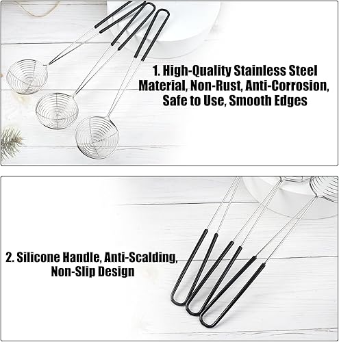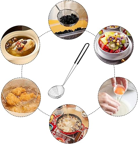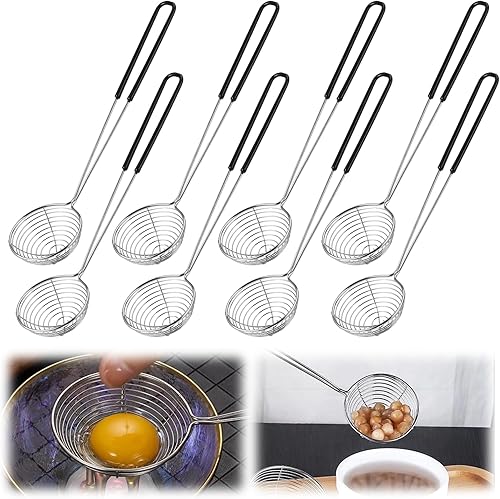8 Pièces Passoire à Fondue Chinoise,Acier Inoxydable Spider Passoire Pot écumoire avec Long Manche,Epuisette Fondue Chinoise pour la Friture,l'éGouttage,le Filtrage des Perles et Bien Plus Encore