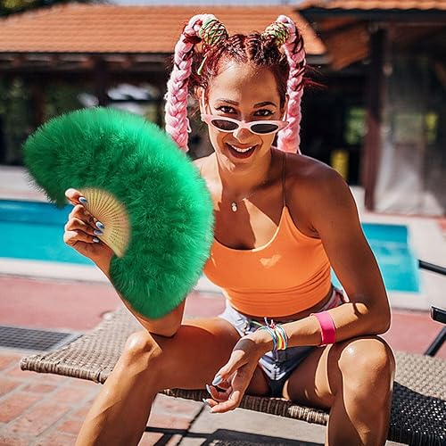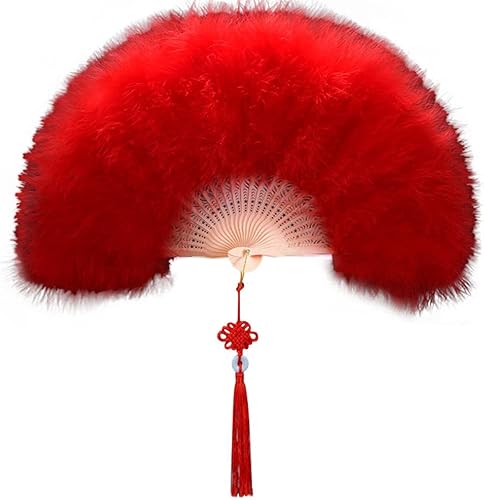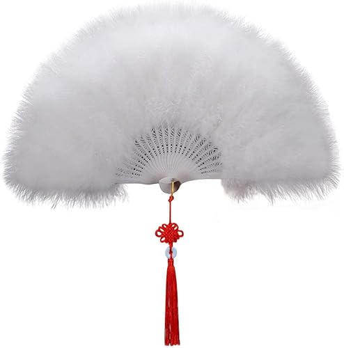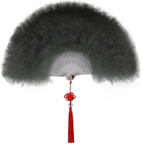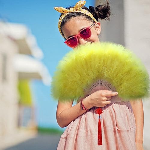 Uposao 1920s Éventail Plume, Éventail Pliant Vintage Éventail de Flapper Eventail Mariage Plume Folding Fan Ventilateur Pliant Accessoires pour Halloween Dansant Show Tea Party Costume Décoration