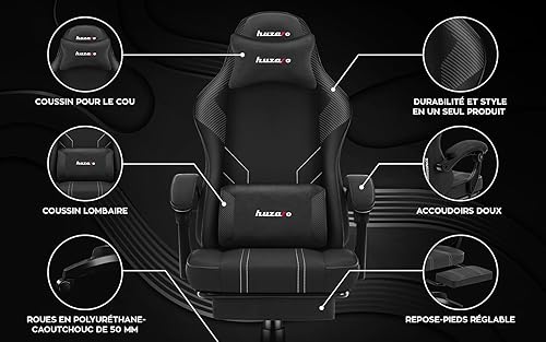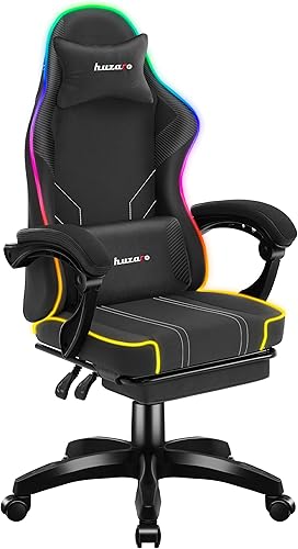 huzaro Force 3.7 Chaise Gaming RVB avec Luminaire | Repose-Pieds | Coussin Lombaire et Cervical | Mécanisme SeatRest | roulettes Silencieuses | Tissu Respirant | Siège Ergonomique | Noir et RVB