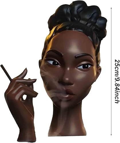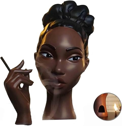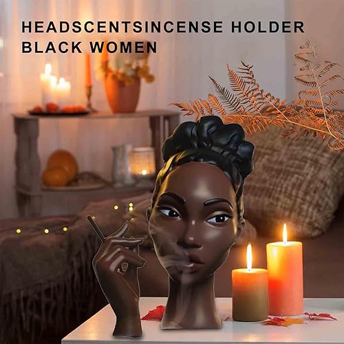 Headscents Brûleur d'encens en forme de tête de femme, noir, élégant brûleur d'encens, pour décoration de la maison, du bureau, du corps, fait à la main