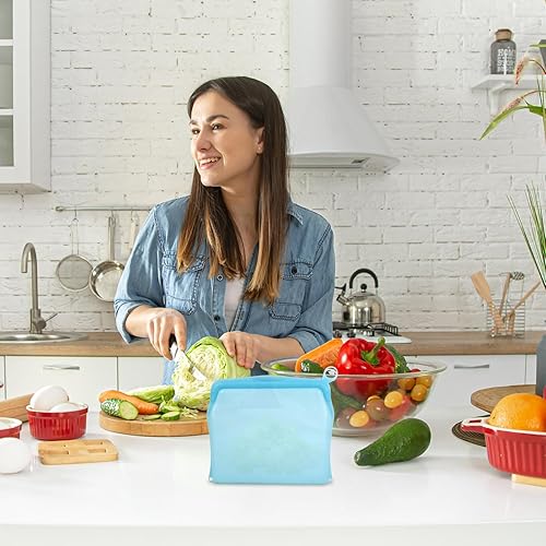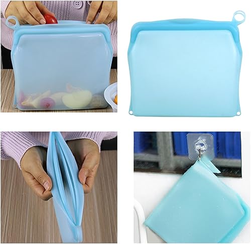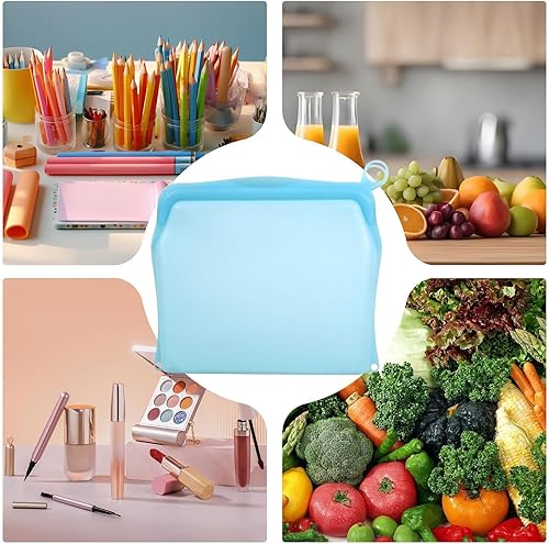 Silicone Food Storage, Practical Vegetable Bags,9.25x8.86x2.36 Inches Convenient Sturdy Meat Freezer Bags, Compact Snack Sandwich Pouch, Ideal for Home, Travel, and Camping