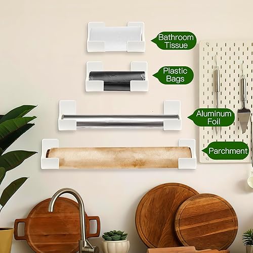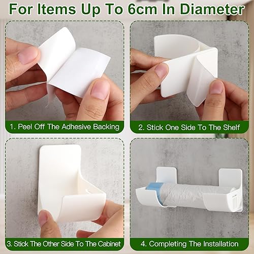 4 Paires Support Sac Poubelle, Distributeur Sac Poubelle Autocollant, Blanc Distributeur De Sacs Poubelle, Film Alimentaire Support Rangement Porte pour Feuille D'étain, Papier Ciré, Sac Poubelle