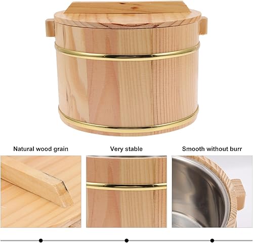 Alipis Couvercle De Bol De Riz Seau En Bois Stockage De Riz Conteneur De Stockage De Céréales Poignée