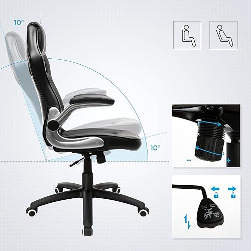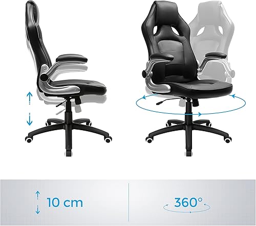 SONGMICS Chaise de bureau de forme sportive, pivotant, avec accoudoirs inclinables, Dossier haut, Hauteur réglable, Inclinable pour se balancer, Design ergonomique, Noir OBG62B 68 x 68 (115-125) cm