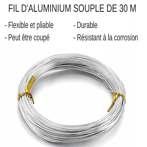 Fil d'artisanat en Aluminium 1mm, Fil Aluminium 30m, Fil Tricotin, Fil d'aluminium, Fil pour Modelage, Flexible Pliable Fil d'argent Pour Bricoler Fabrication de Bijoux (argent)