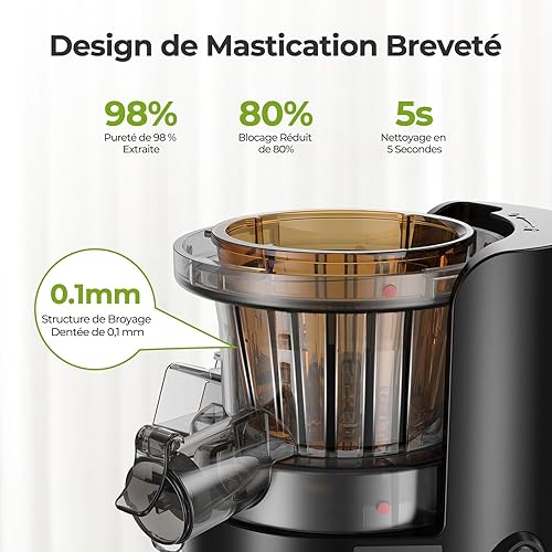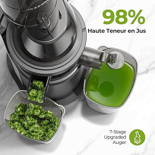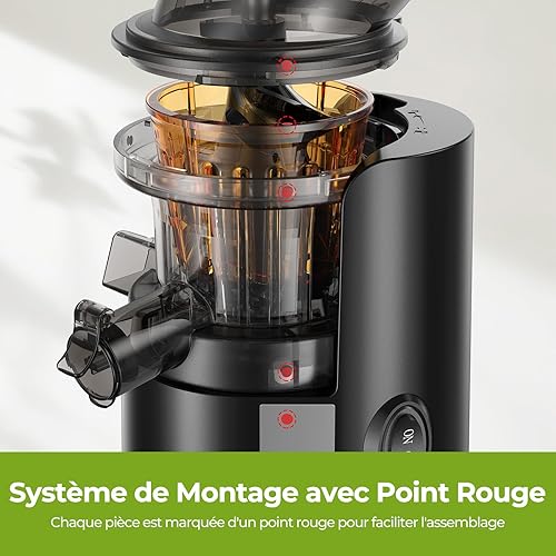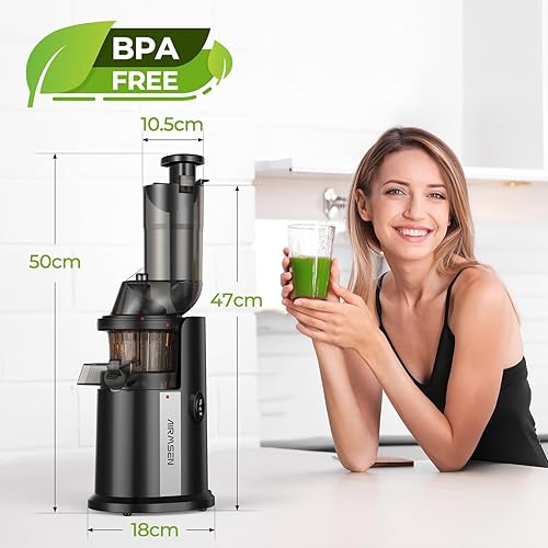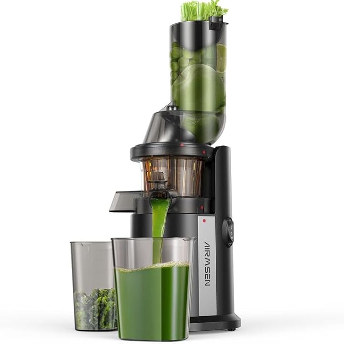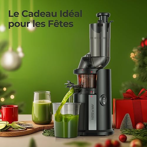 AIRMSEN Extracteur de Jus, Extracteur à Jus de Fruits et Légumes avec une Goulotte d'Alimentation de 82 mm pour Fruits et Légumes Entiers, Slow Juicer Presse-Agrumes à Froid sans BPA (Noir)
