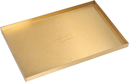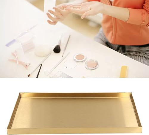LetCart Plateau De Rangement Rectangulaire en Métal Doré Moderne, Présentoir De Bijoux Cosmétiques, Plateau en Acier Inoxydable