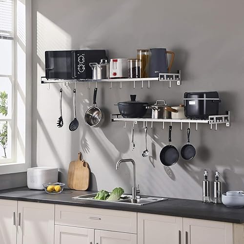 istBoom Support mural pour casseroles et poêles avec 16 crochets, en acier inoxydable, très résistant, design moderne à lattes (61 x 24 cm)
