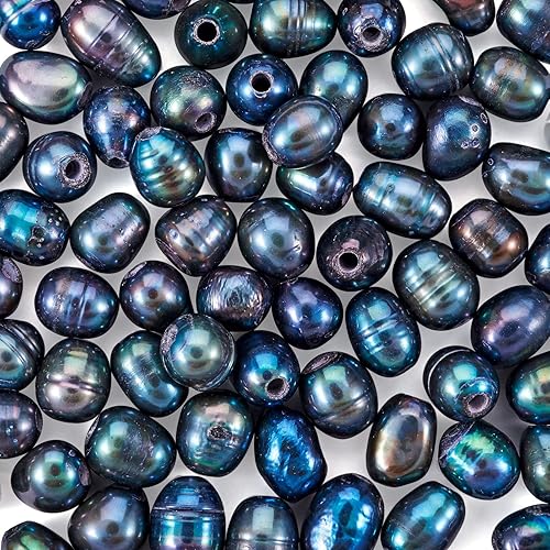 PandaHall Lot de 100 perles de culture d'eau douce naturelles de 7 à 8 mm de forme ovale pour colliers, bracelets, bijoux, loisirs créatifs