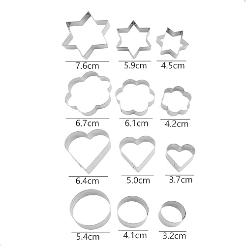 Lot de 12 emporte-pièces en acier inoxydable en forme de cœur, cercle, fleur, étoile pour pâtisserie, formes variées pour la pâtisserie créative