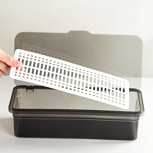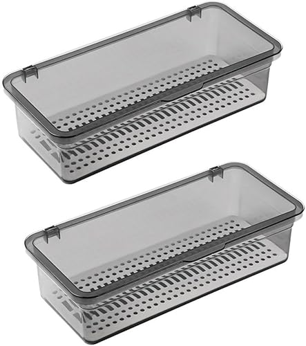 Qeunrtiy Plateau à Couverts avec Couvercle, Rangement D'Ustensiles avec Couvercle Plateau à Couverts en Plastique, Organisateur de Tiroir à Couverts, Conteneur de Rangement D'Ustensiles B
