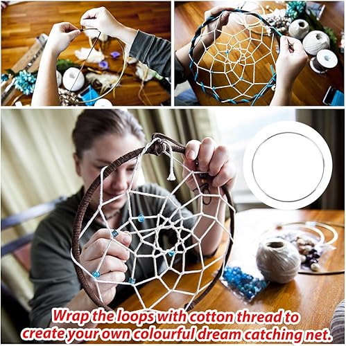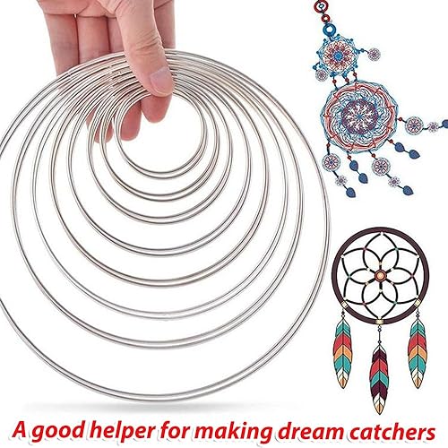 PNOOFR 18 Pièces Cercle Métal, Cercle Attrape Reve Argenté, anneaux en métal artisanaux de 10 cm, Cerceau Metallique Anneaux, Attrape Rêve, pour Family DIY Craft Making, Attrape Rêves, Fleurs