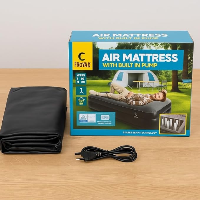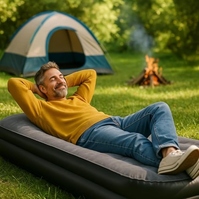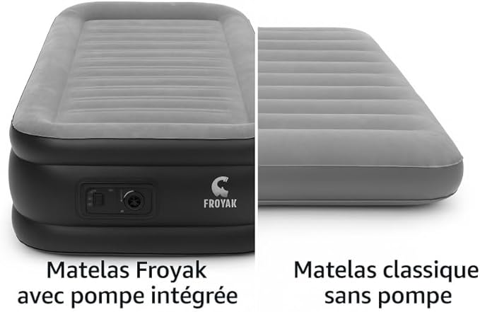 Matelas Gonflable 1 Place avec Pompe électrique intégrée – 196x97x38 cm, capacité 100 kg, Surface en PVC, gonflage Rapide