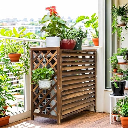 Support De Climatiseur En Bois Extérieur Cache Climatiseur Exterieur, Couverture De Climatiseur Cachée En Bois Pour Protection Et Esthétique, Clôtures D'écran De Confidentialité Pratiques Et Élégantes