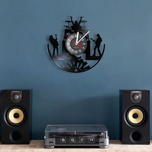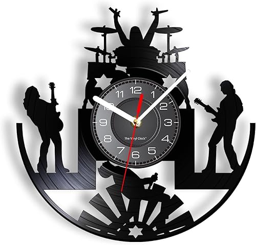 Guang trading Pendule Murale de 30CM Rock Band Musique Groupe Horloge Murale Rock Band Batteur Heavy Metal Groupe Guitariste Performance Scène Spectacle Disque Vinyle Horloge Murale