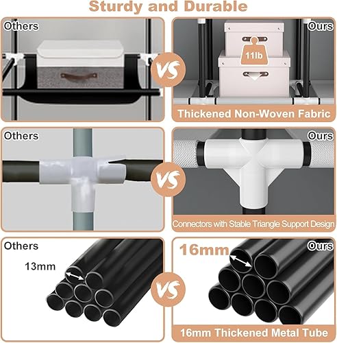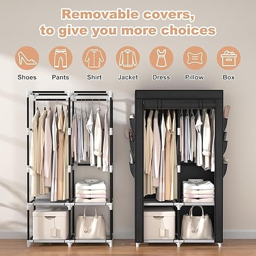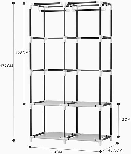 Vicye Armoire de Rangement Portable en Tissu, Penderie Tissu avec 4 Étages, 2 Barres de Suspension, Couverture et 6 Poches, Armoire Tissu Facile à Monter pour Chambre, Noir (90 x 45 x 172 cm)