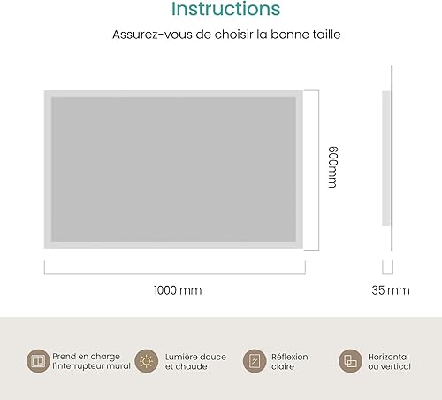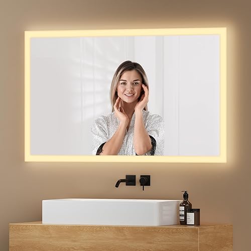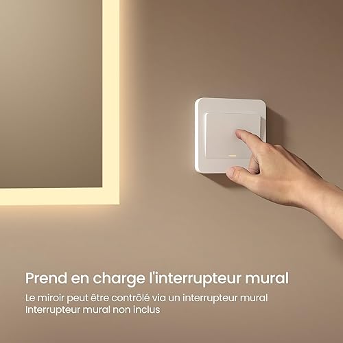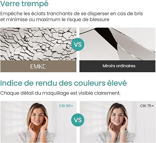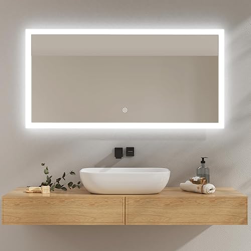 EMKE Miroir Salle de Bain LED 120x60 cm, Miroir avec Éclairage Blanc Froid, Miroir Mural avec Interrupteur Tactile, IP44, Économe en Énergie, Miroir Lumineux
