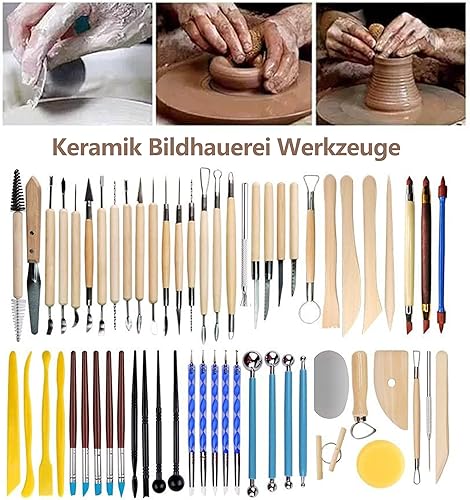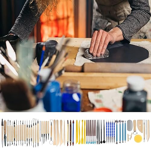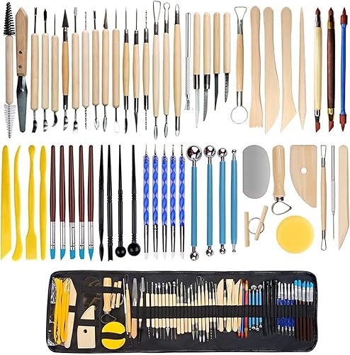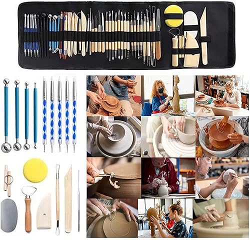 Outils Poterie Kit Argile: 61 Pièces Outils Sculpture Argile Ensemble d'outils de Modelage Outils Argile Autodurcissante avec Sac de Rangement pour Modélisme, Sculpture, DIY