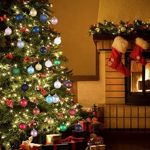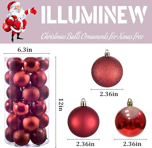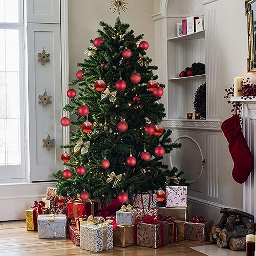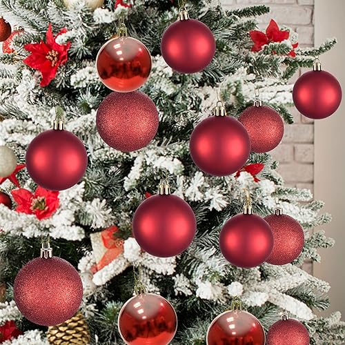 Boules de Noel 6cm Lot de 30 Decoration Noel Sapin-Boule de Noël en Plastique Incassable Decoration Noel Interieur ou Extérieure,Rouge