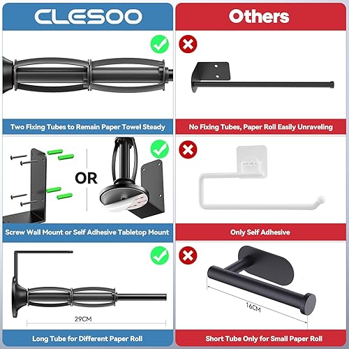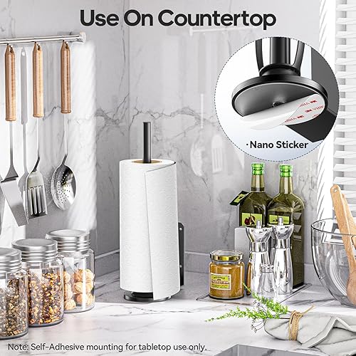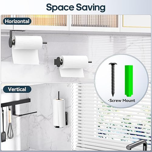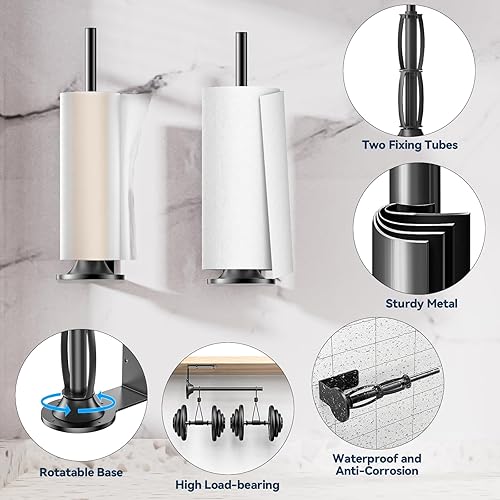 Support Essuie Tout Mural, Porte Sopalin sous l'armoire avec 2 Tubes de Fixation à Effet Amortissant, Porte-Serviettes en Papier à Percer ou à Coller pour Comptoir de Cuisine, Salle de Bain