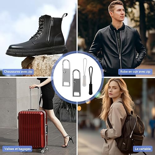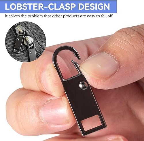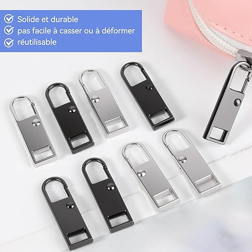 20PCS Tirettes Fermeture Eclair Réparation,Métal Zipper Pull,Métal Zipper Pull Amovible,Réparation Fermeture Eclair et Cordon pour Porte Monnaie Vêtements Jeans Valises(Noir/Argent)