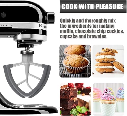 Batteur Flex Edge avec bords en silicone sur les deux côtés pour mixeur Kitchenaid – Convient pour blender 4.5/5 Quart Tilt-Head et accessoires de mixage Kitchenaid (gris)
