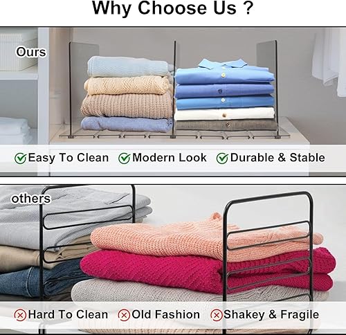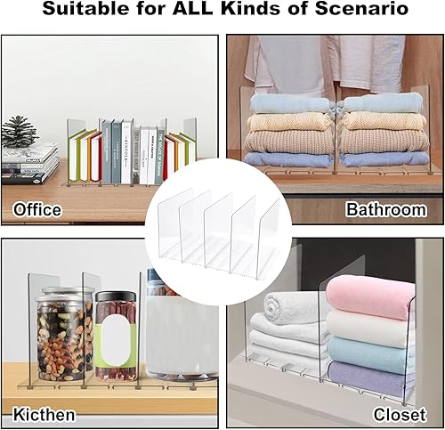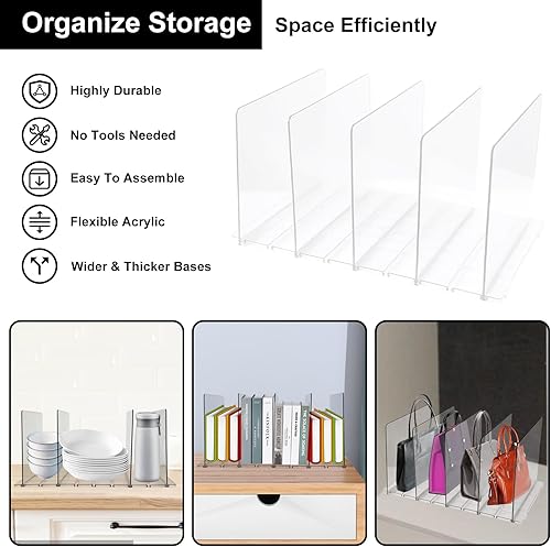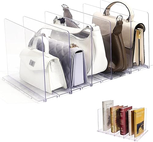 Domigard 5 Pièces Separateur Etagere,Rangement Sac à Main Réglables, Séparateur d'étagères Armoire Amovible Separateur Etagere Dressing pour Armoire Bureau, Transparent