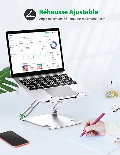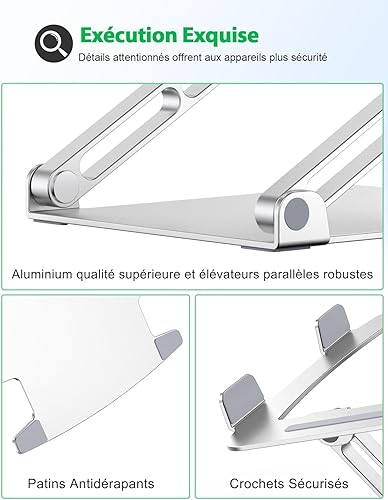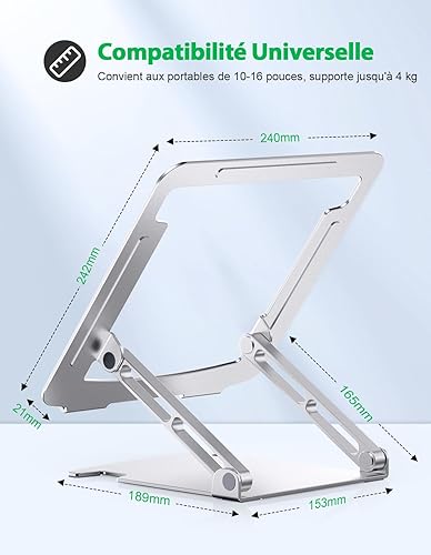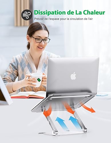 Glangeh Support Ordinateur Portable Aluminium, Refroidissement Support PC Portable Ventilé avec Double Axe Rotation Réglables Pliable Ergonomique, Support de Livres, Compatible avec MacBook (10'-16')
