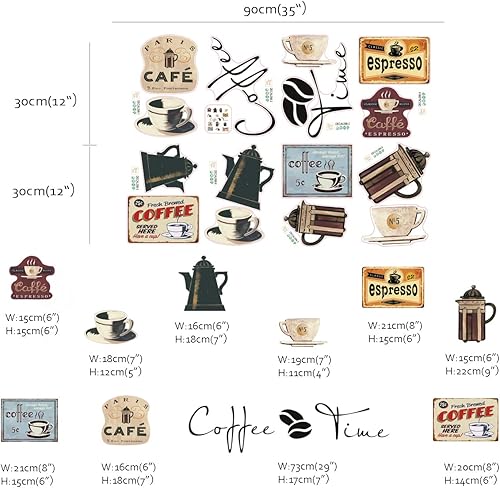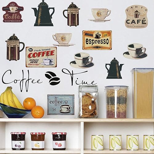 Runtoo Stickers Muraux Café Autocollant Mural Vintage Cuisine Tasse à Café Deco Stickers Cuisine Salle à Manger Restaurants Décoration