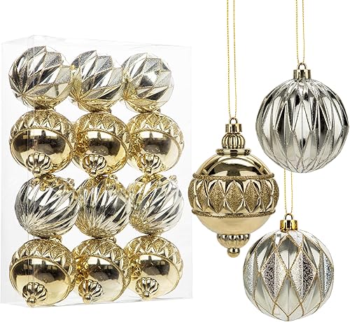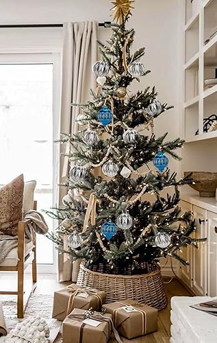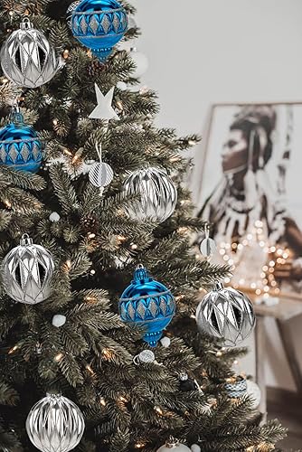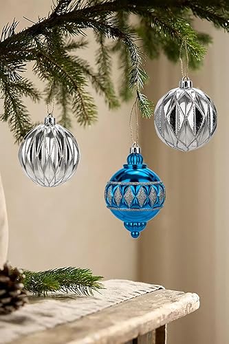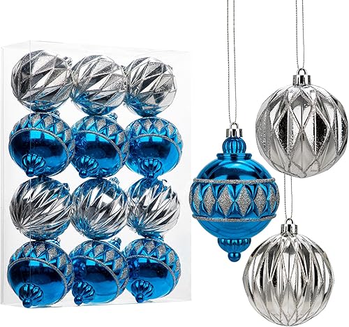 Hollyone Lot de 12 boules de Noël bleues et argentées - Décoration de Noël - Boules décoratives à suspendre pour Noël, fête, vacances